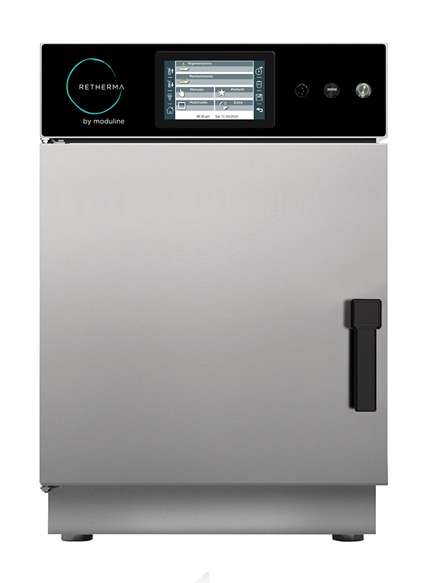 - LED-Display (7,0 Zoll), Touch-Screen, multilingual, Hauptschalter, Taste für Start / Stopp, CLIMACHEF-System, automatische Kontrolle der Luftfeuchtigkeit, Warmhaltefunktion, Vorheizfunktion, akustisches Signal am Ende des Zyklus, Sperrsystem mit Kennwort, IoT-Schnittstelle (optional), WLAN-Schnittstelle (optional), QR-Code-Rezeptleser (optional)