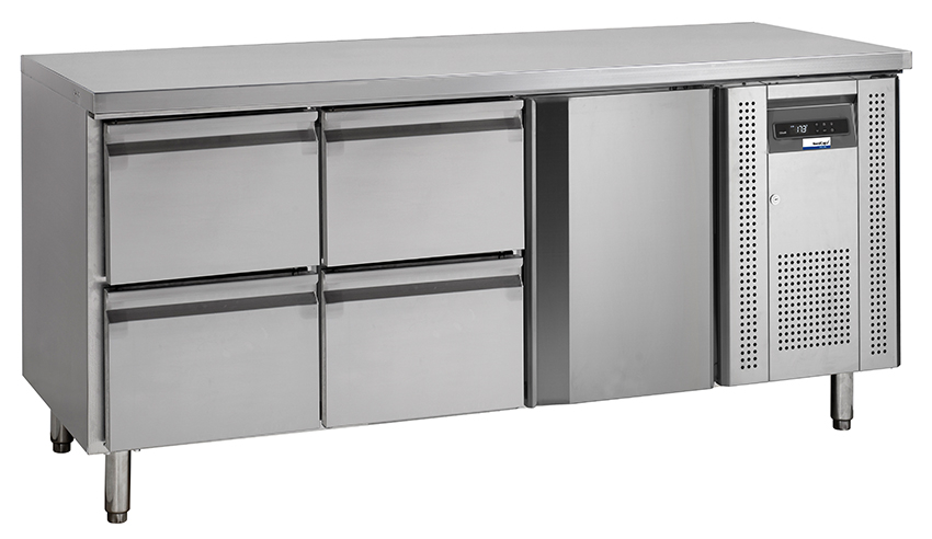 - 4 x Halbschublade, CNS-Griffleiste, mit Magnetdichtungen, maximale Tragfähigkeit der Schubladen in kg: 35, Nutzhöhe in mm: 150