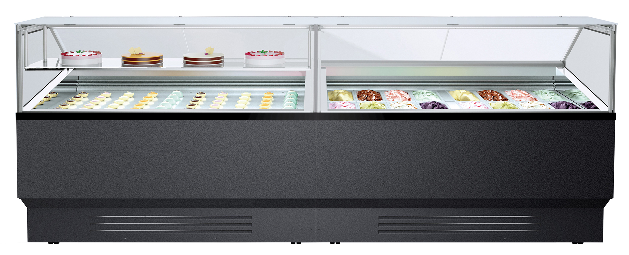 zur temporären Kühlung und Präsentation von Speiseeis Panorama-Glasaufbau, eckig, Frontglas,...mehr